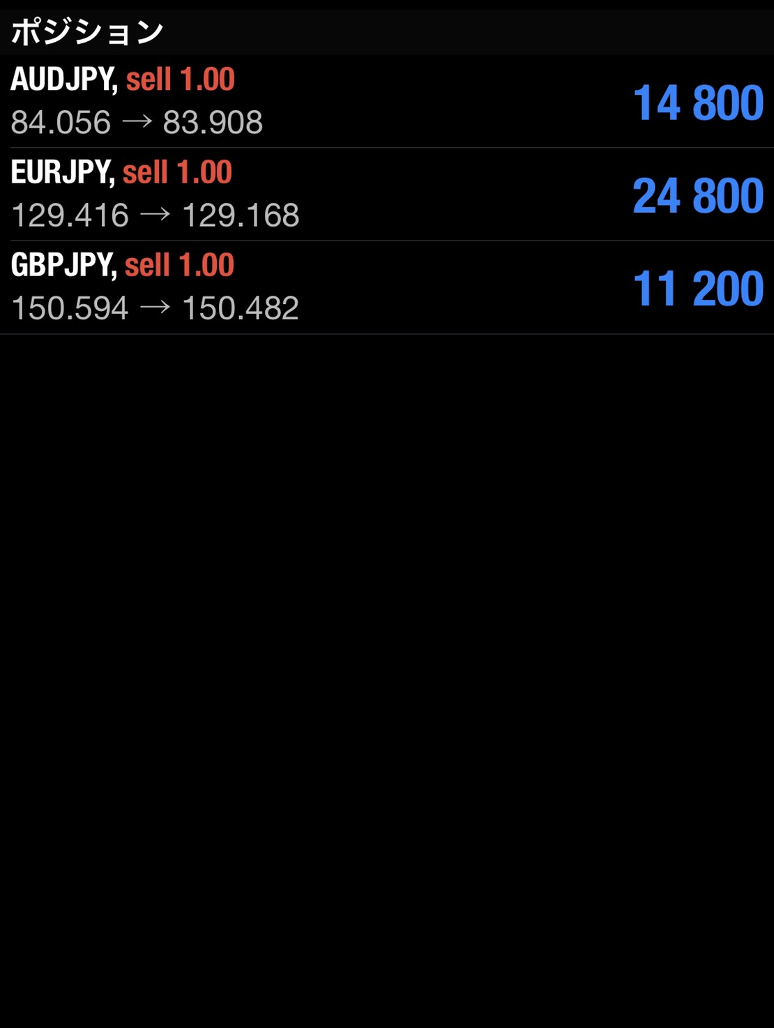 これはこのまま下落していく可能性を考えてのショートです。