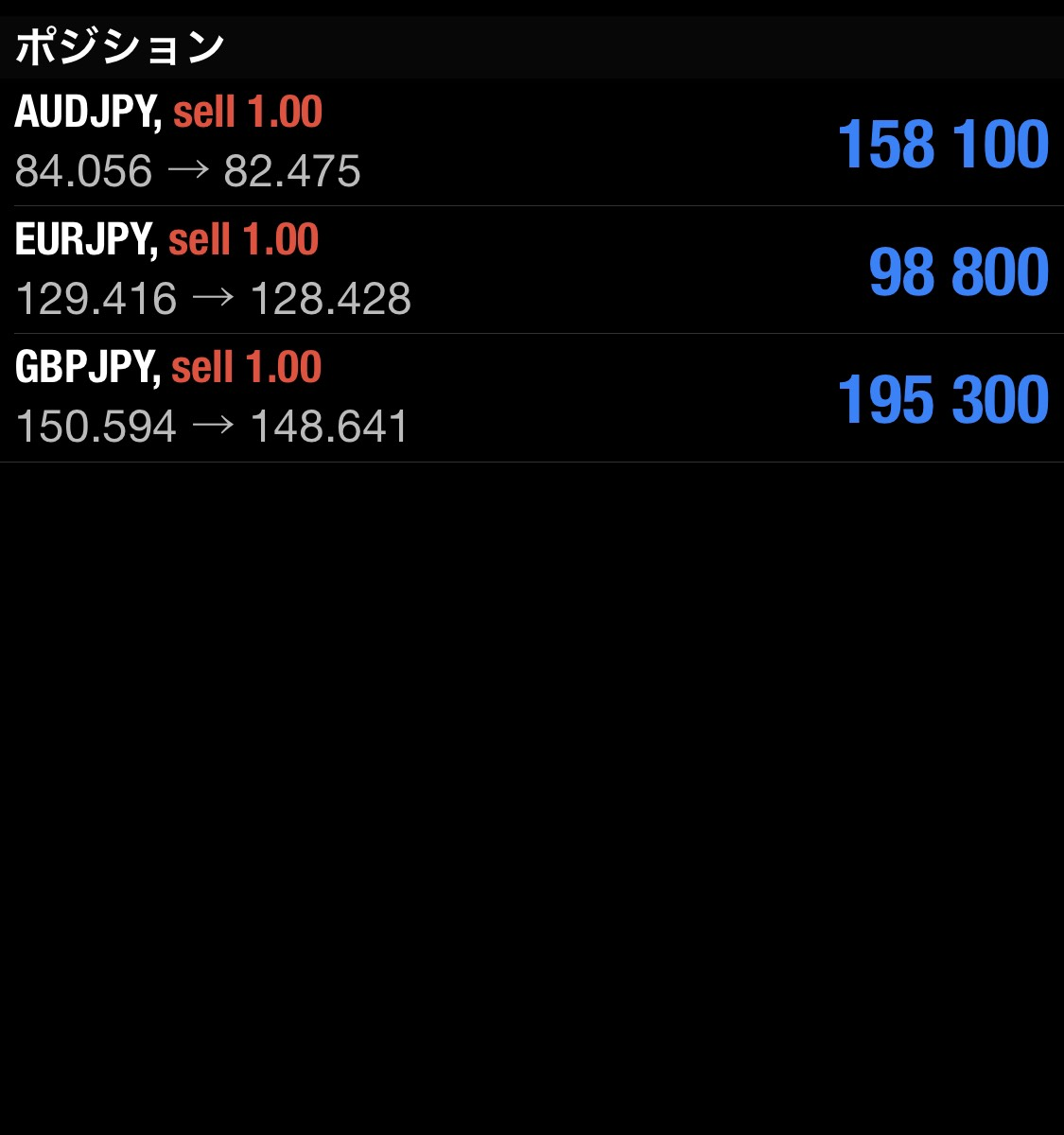 僕は週足の状況と証拠金的に統一したロットですが、本来は通貨のボラに合わせて資金管理した方が良いです!