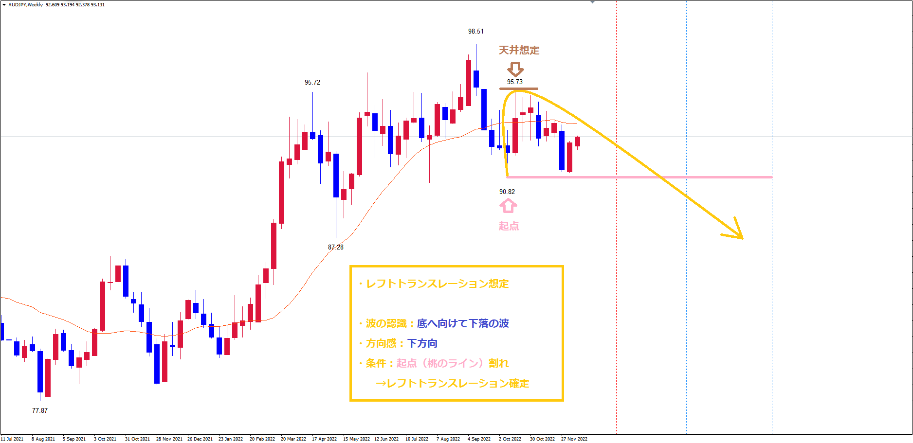 ただ、桃のラインを割れるまでレフトトランスレーション確定という訳では無いので注意してください。