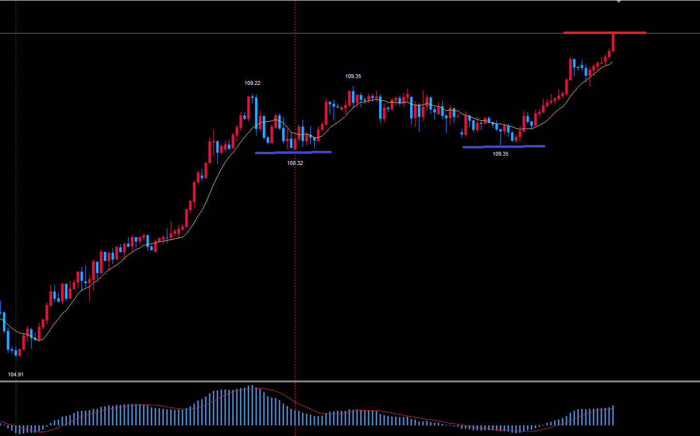 いつ底を付けてもおかしくない状況で高値更新しているので、109.35で既に反転している可能性も考えていきます。