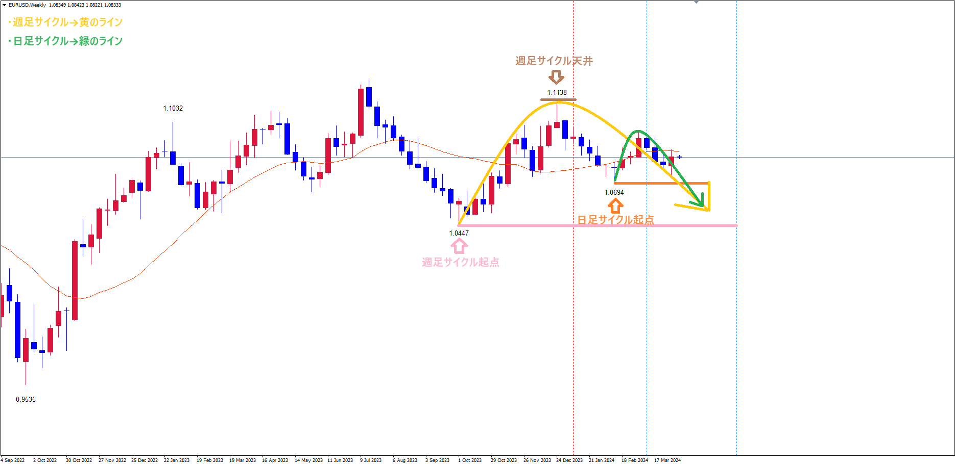 今回はユーロドルの日足・週足のサイクル的認識とパターン&イメージがどうなるかについて解説していきます。