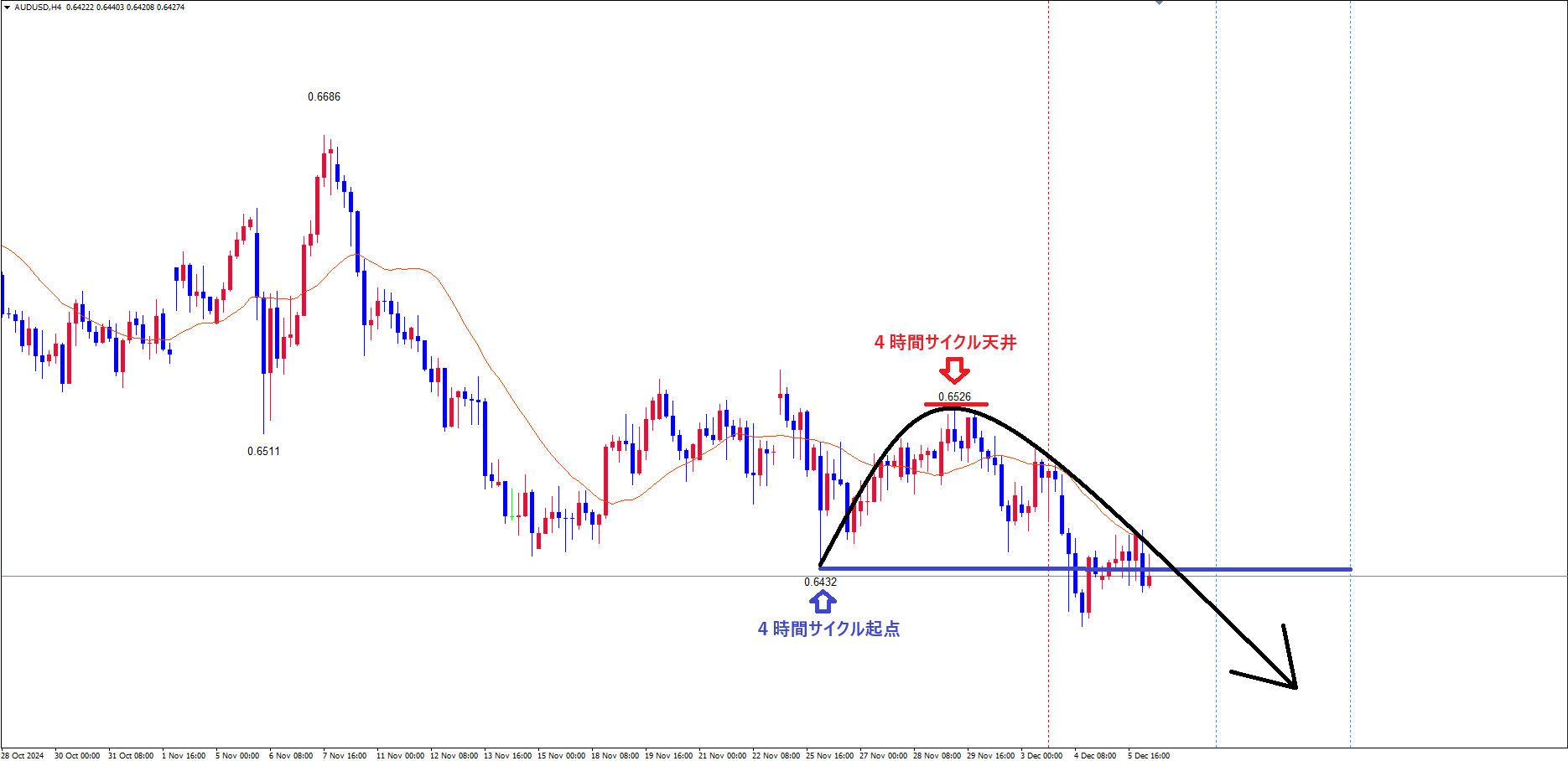4時間サイクルは、起点青のライン(11/26の安値0.6432)から、現在50本目です✅
