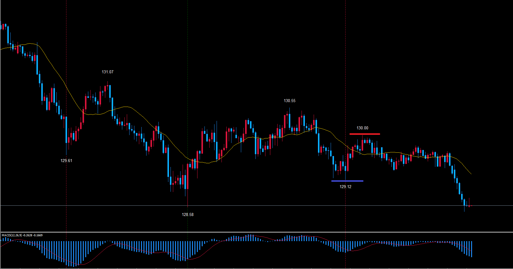 既に赤のライン130.00で天井を付けていて、大きく下落しているので狙えません。