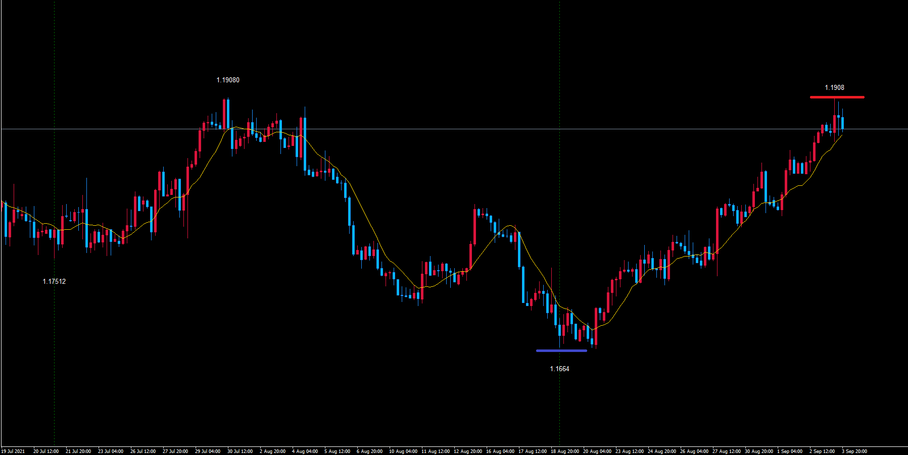 現在は赤のライン1.1908で天井を付けている可能性がありますが、少し離れていますし、