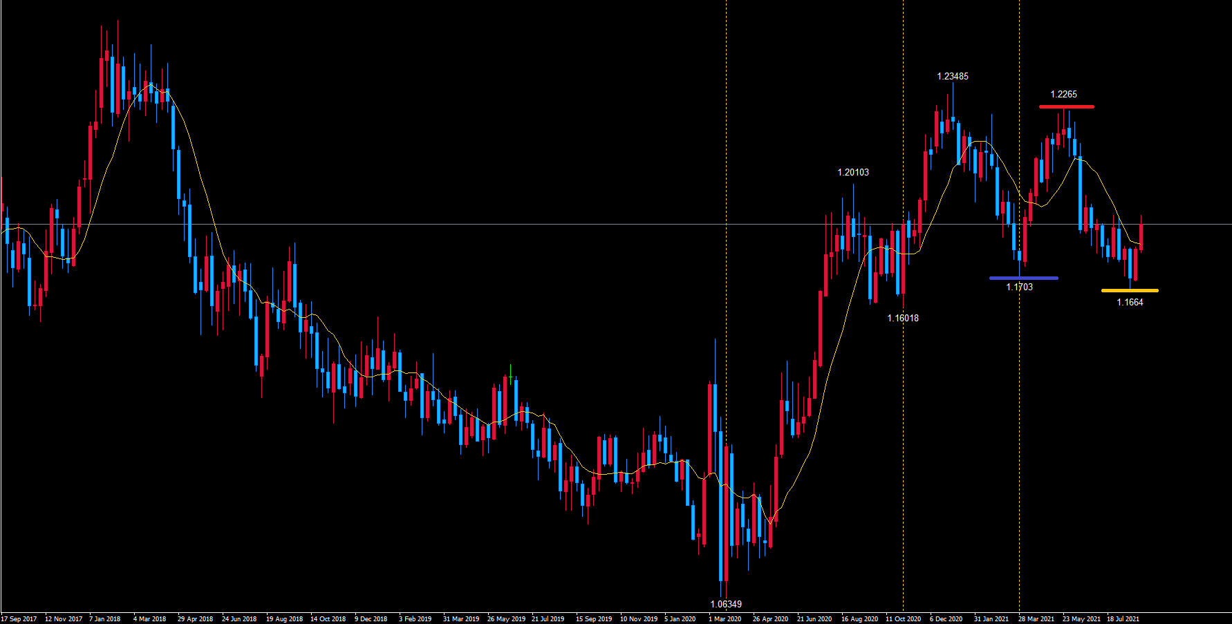 週足のサイクルも黄色のライン1.1664で底を付けて次のサイクルに入っている事も可能性として考えています。