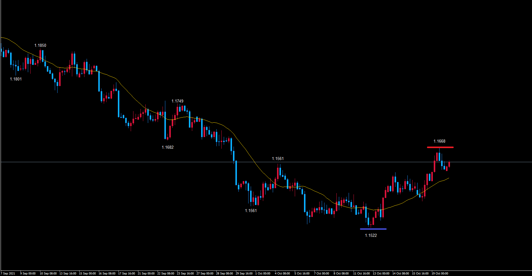 1.1663からの日足のサイクルは直近の最安値の青のライン1.1522で底を付けているので、