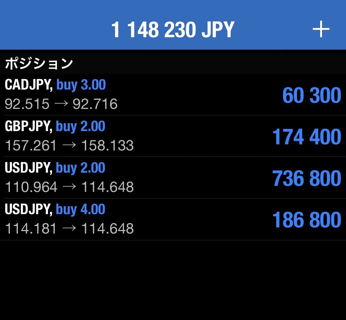 クロス円は4H反転の可能性も考えて、直近最安値付近で動いていた通貨は、昨日打診ロング保有しました。