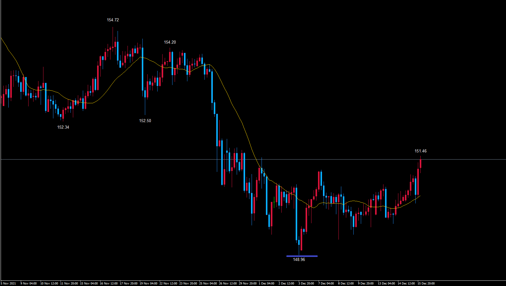ただ、先ほどお伝えした4時間サイクルで148.96割れが難しくなってきているので、