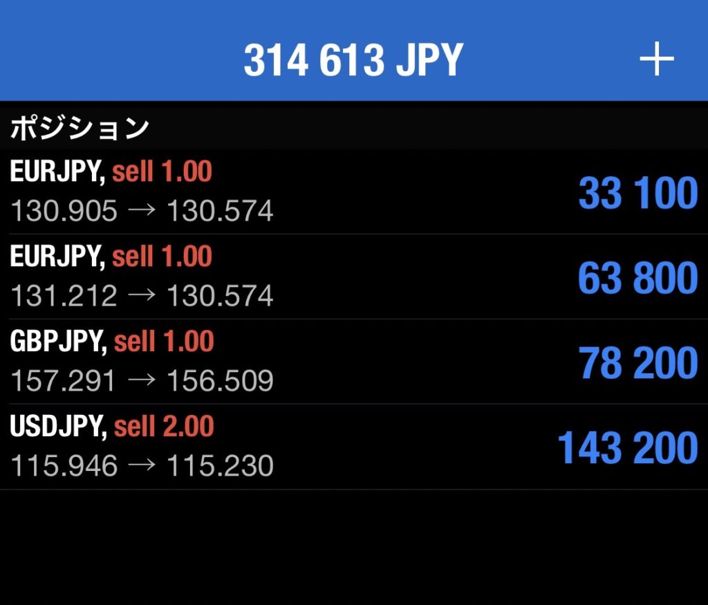 昨日天井と想定している高値付近で動いている通貨で追加ショートを保有しました。