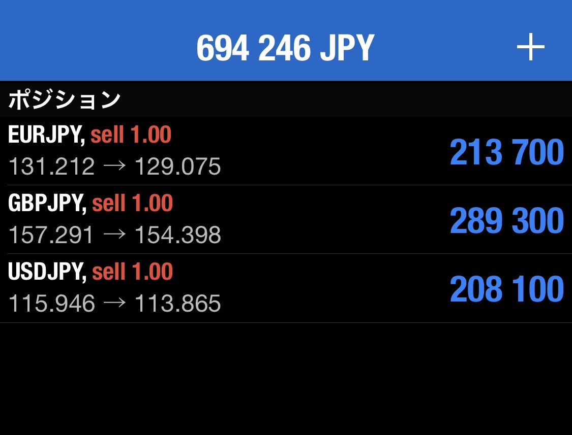 日足レベルでの反転上昇の可能性もあるので、今日、明日、下げ止まり反転上昇があれば、半分決済も考えておきます。