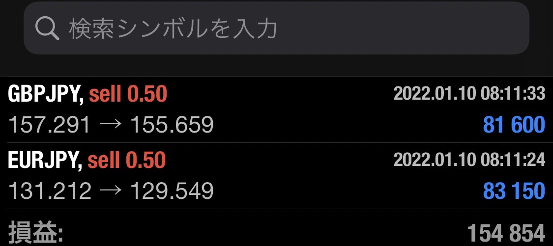 これでポンド円、ユーロ円のショートは終了です(^^)