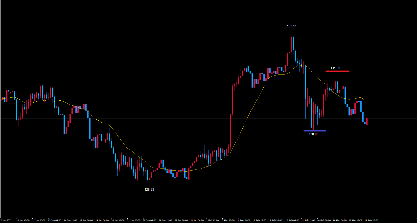 ユーロ円4時間サイクルは、起点の青のライン130.03から現在28本目です。