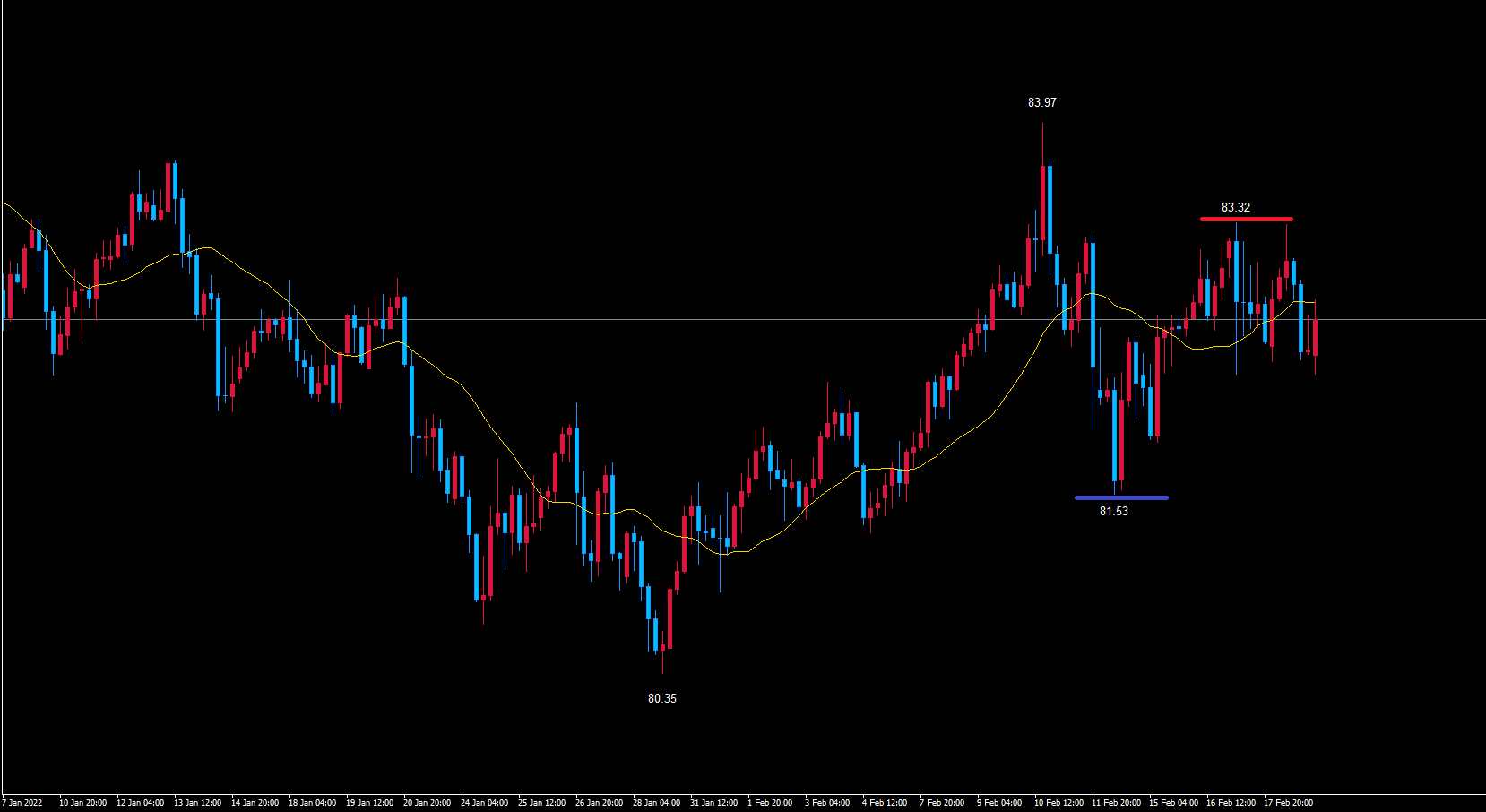 今後は、起点の青のライン81.53割れなるか注目していきたいと思います。