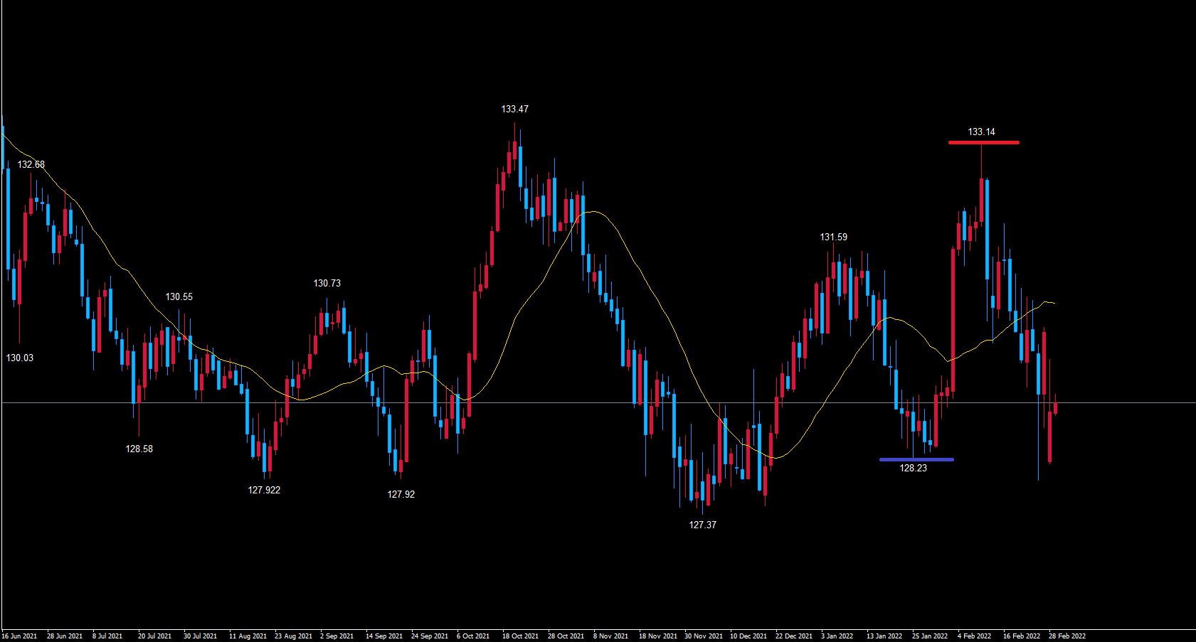 130.28付近までの戻し、もしくは、これから高値更新して天井を付ける展開になってくればショート狙いです。