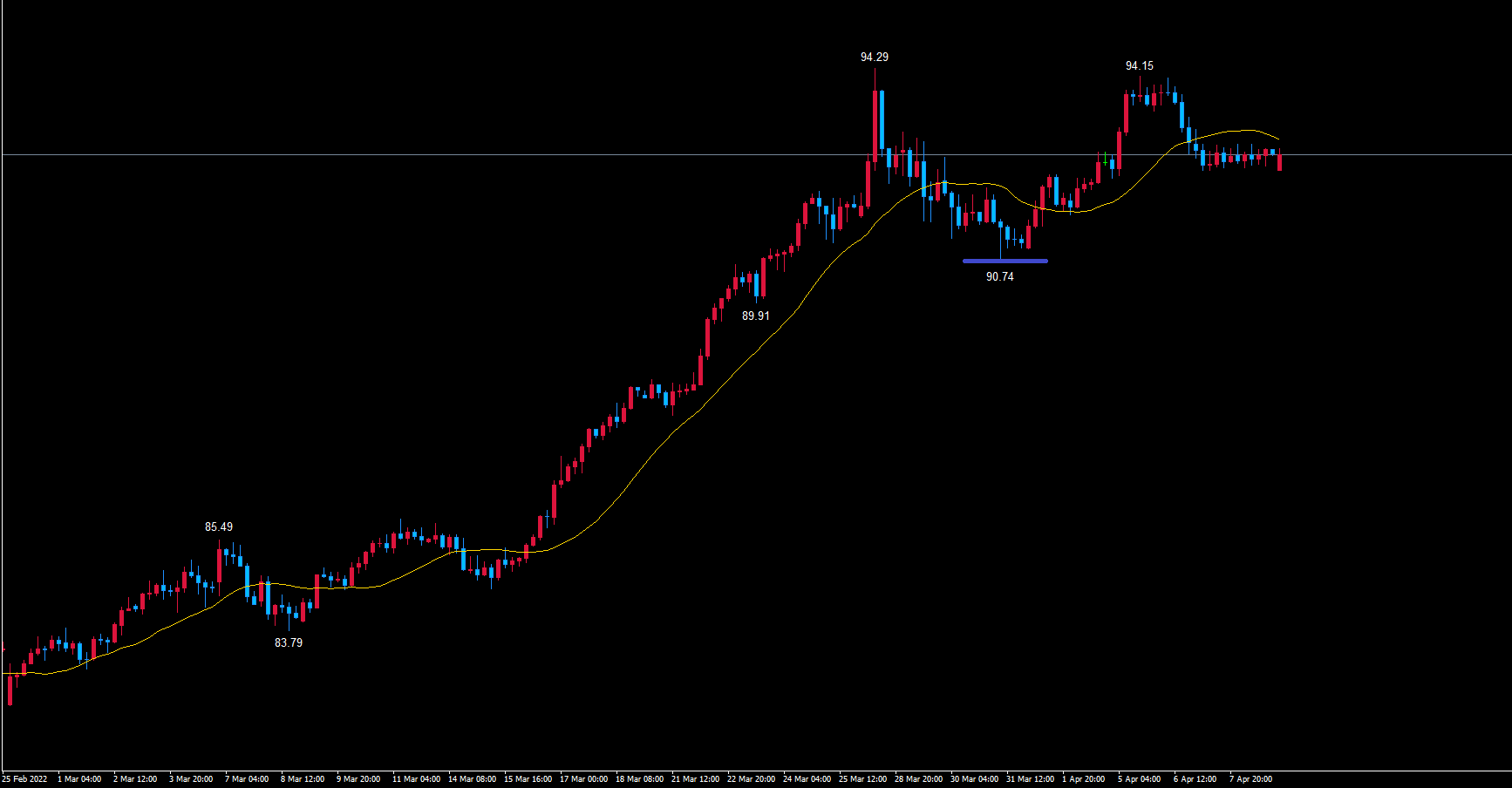 豪ドル円4時間足チャート