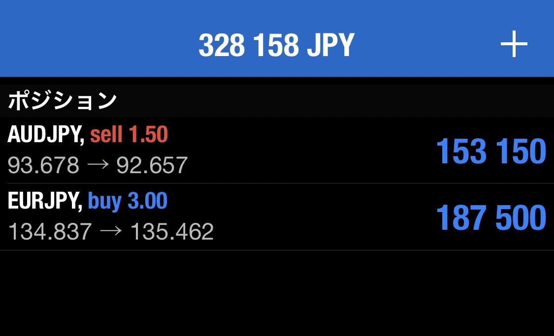 各通貨上昇の可能性が出てきているので、豪ドル円のショートはリスクヘッジの為一部利確しました。