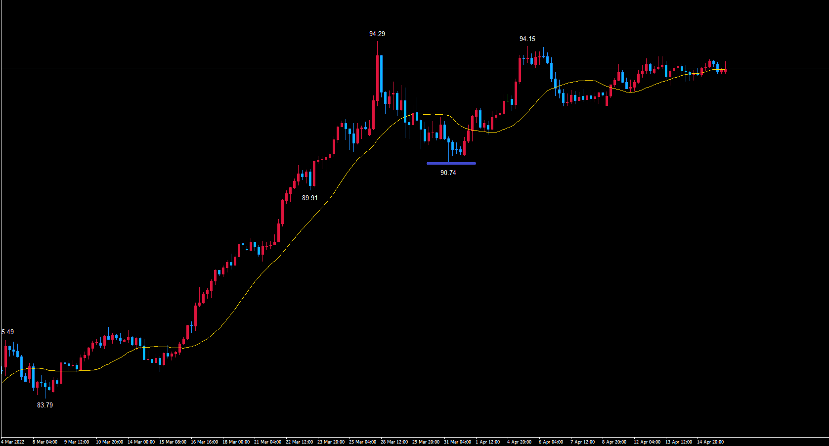 起点の90.74を割れない限りは、これから高値更新して天井を付ける事も理論的に可能です。
