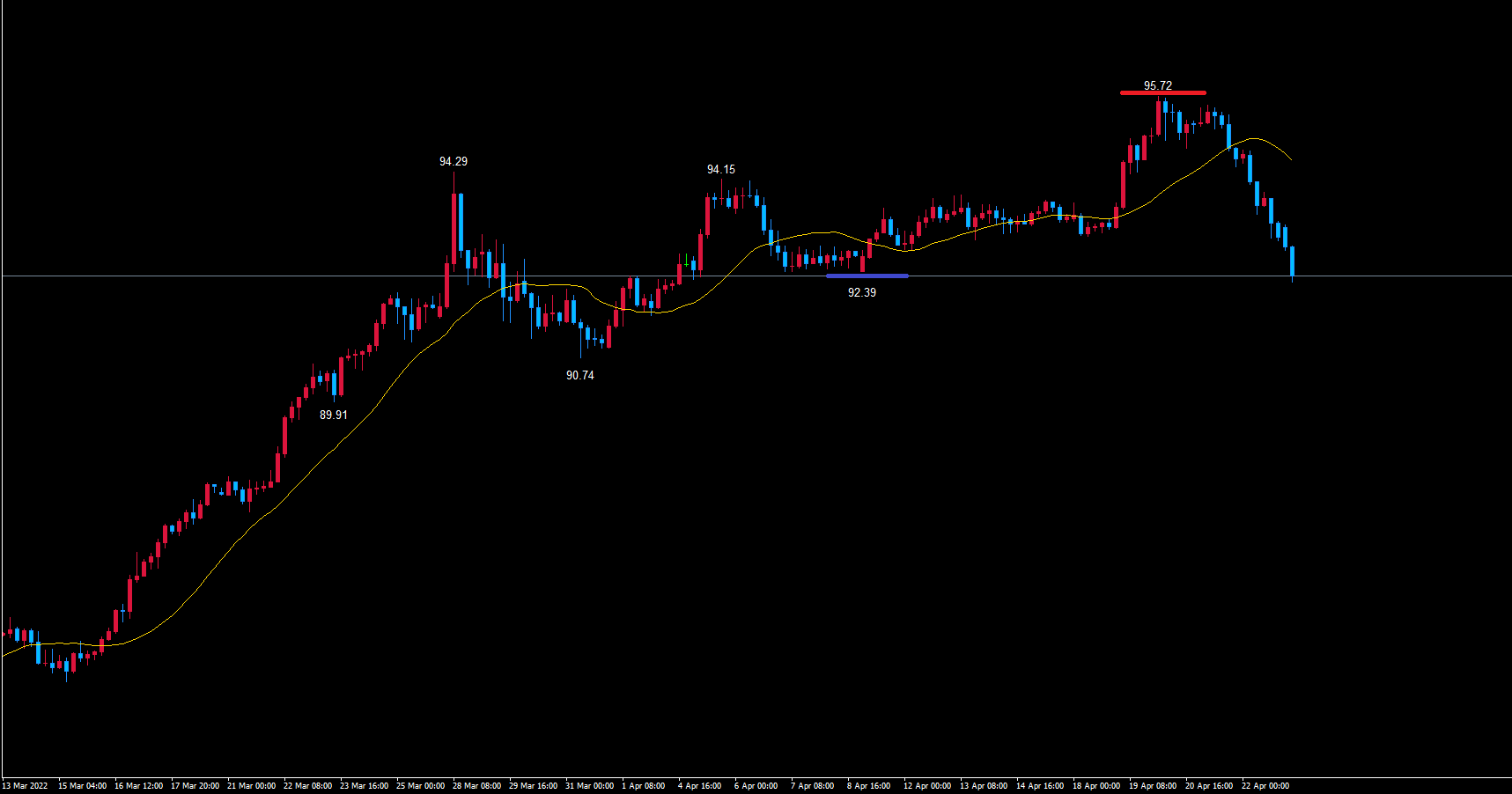 これまで3月31日の安値90.74が起点のサイクルを考えていました、今週も下落スタートという事で、