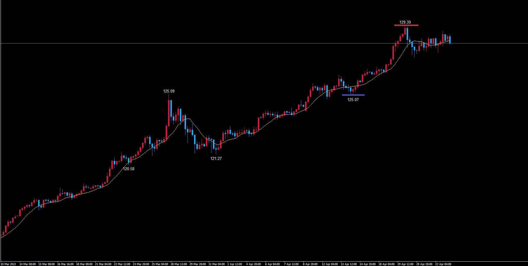 つまり、今後青のライン125.07以下まで下落していく想定という事です。