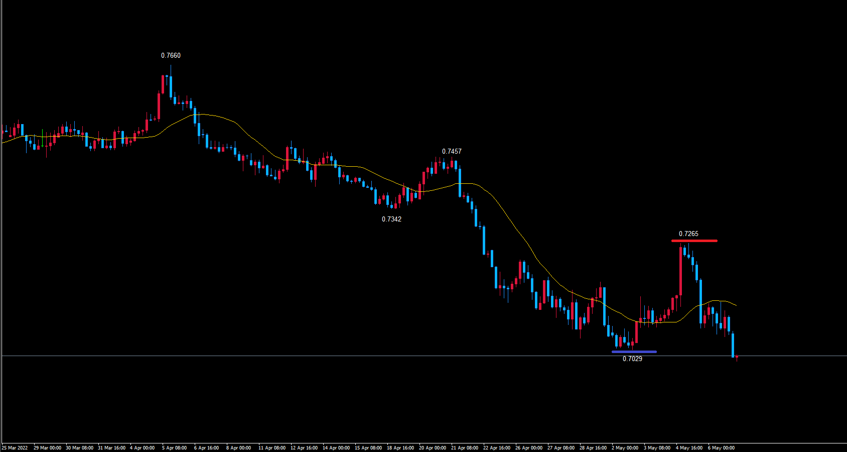 豪ドルドル4時間サイクルは、起点の青のライン0.7029から現在27本目です。
