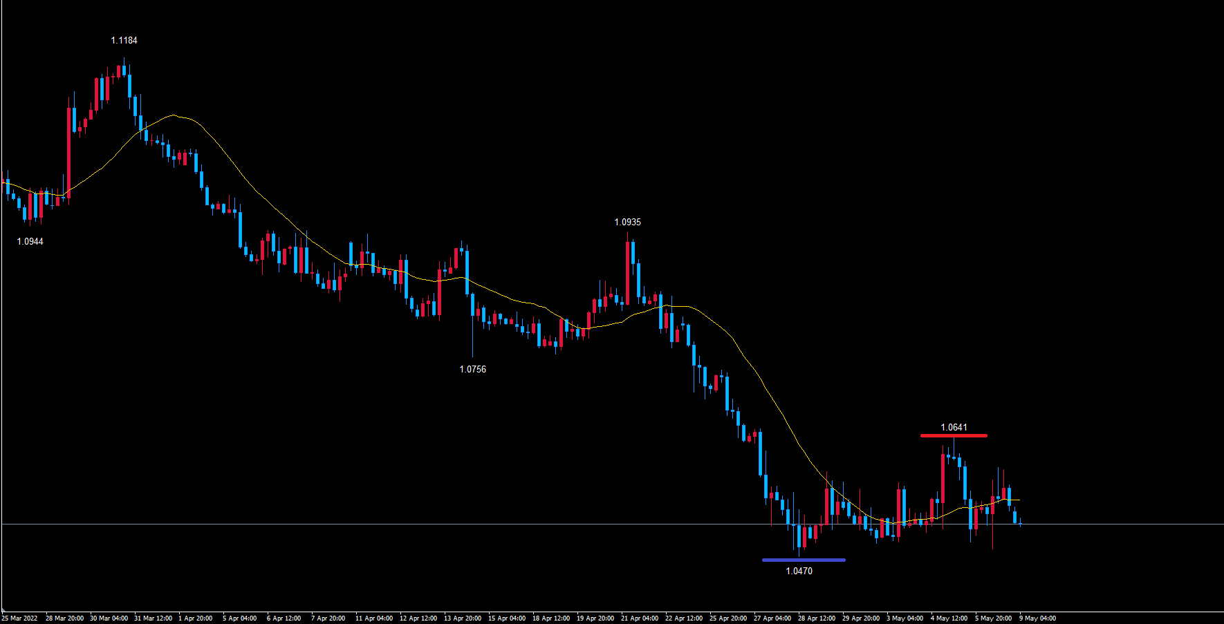 ユーロドル4時間足サイクルは、起点の青のライン1.0470から現在41本目です。