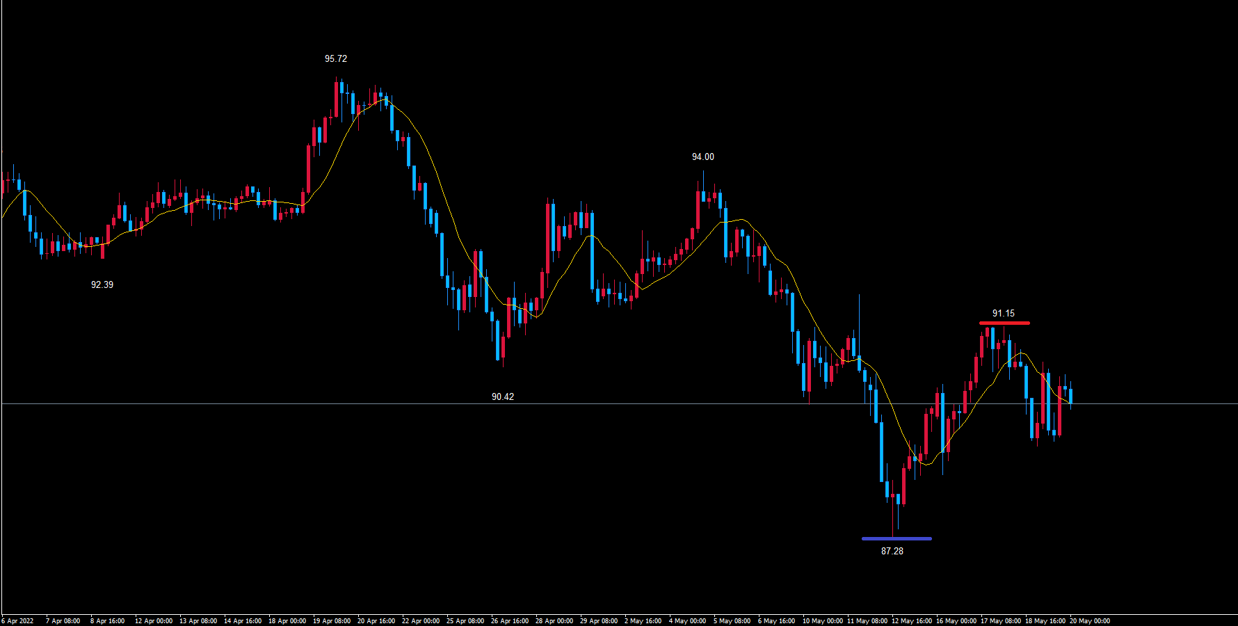 このサイクルは現状サイクル内最高値赤のライン91.15を20本目に付けています。