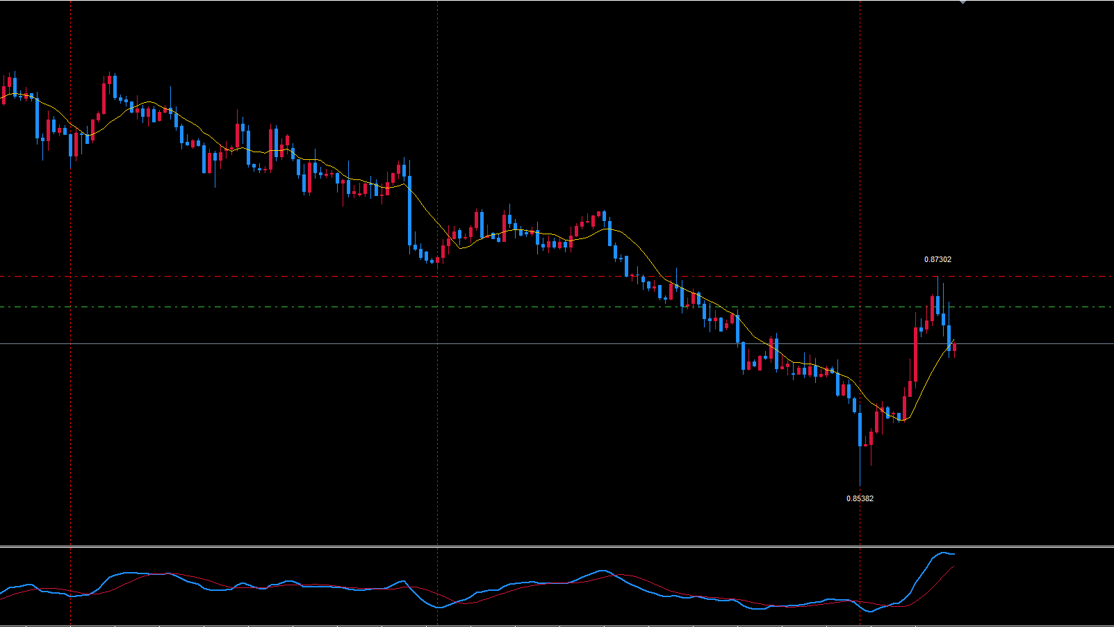 注目は0.87302が天井になるか!?天井になり下落した場合、0.85382を割れる下落になるか!?