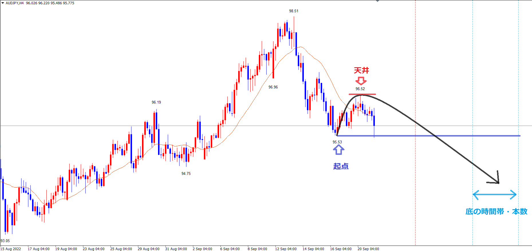 今後は基準の本数(底の時間帯・本数)まで下落の波が継続していく事が考えられます。