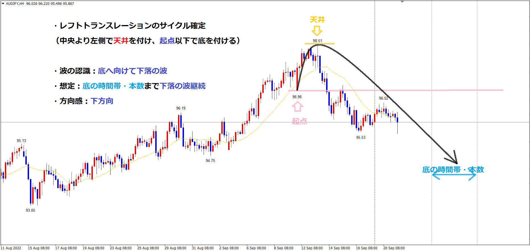 起点の青のラインを割れた時点で、青のラインからのサイクルはレフトトランスレーションのサイクルが確定し、