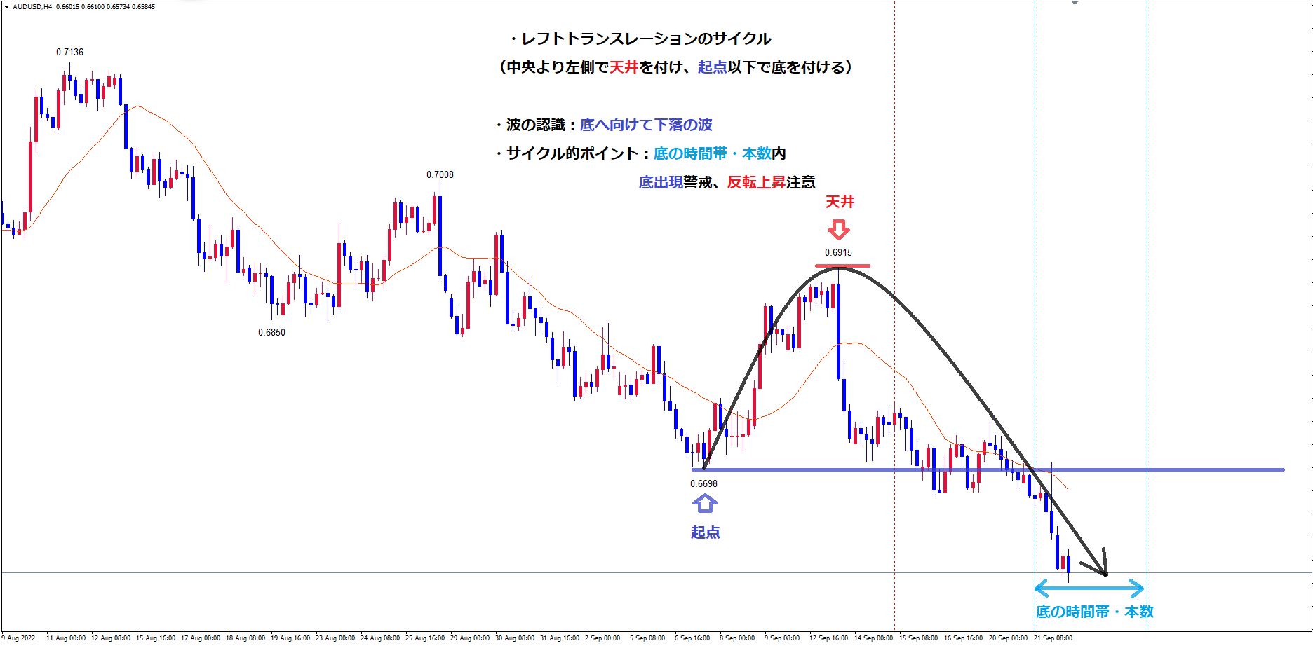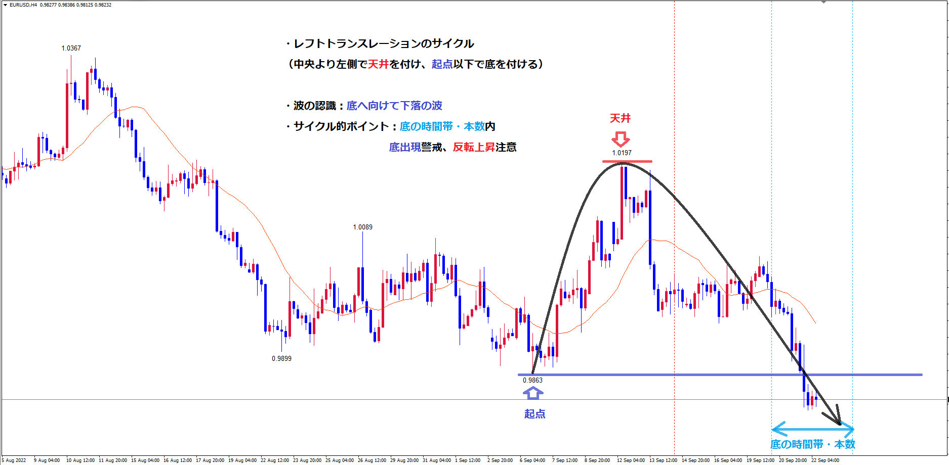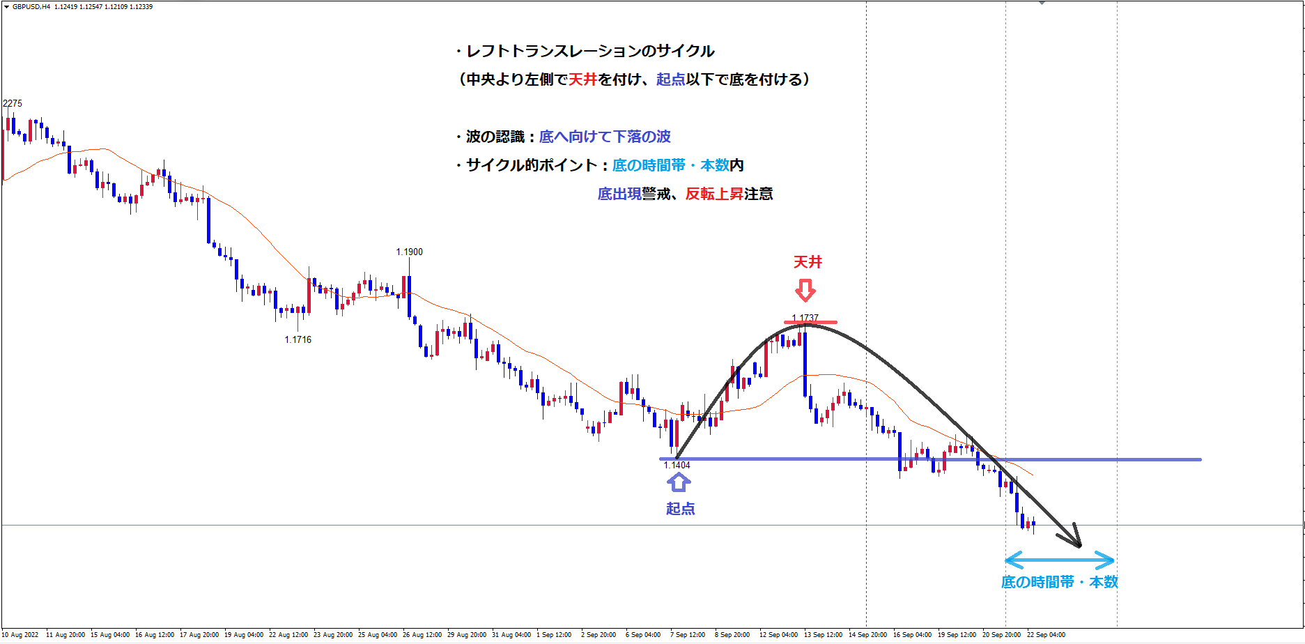 このサイクルは既に起点の青のラインを割れているのでレフトトランスレーションのサイクルが確定しています。