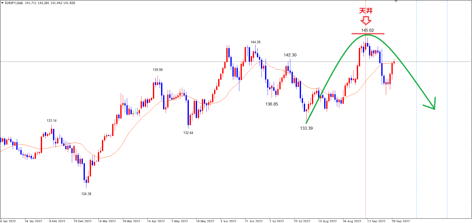 一例)EUR/JPY 日足