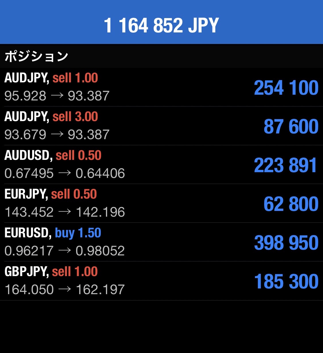 各ポジション、ストップは建値においてあります。