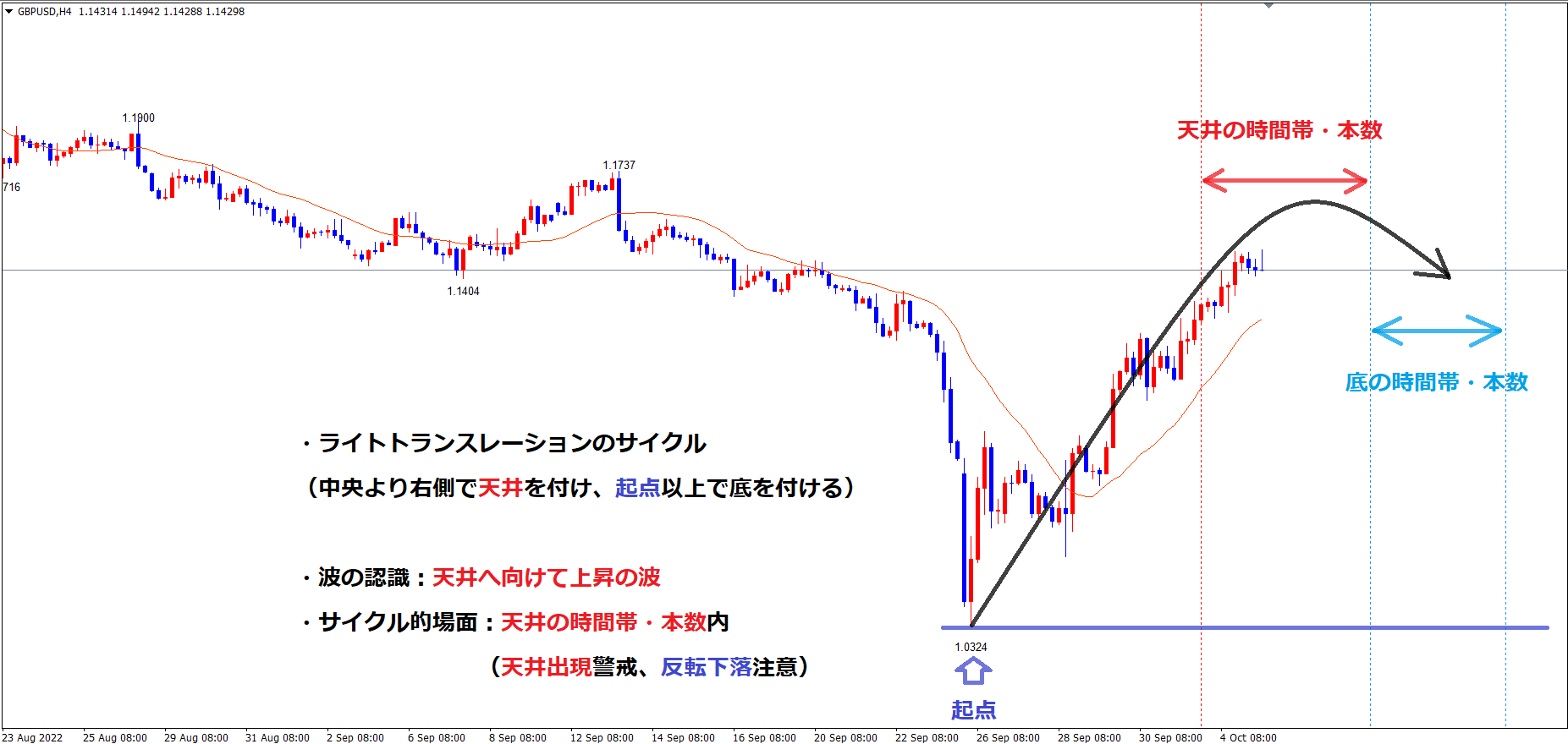 ただ、今回の4時間サイクルがライトトランスレーションのサイクルを形成する場合、