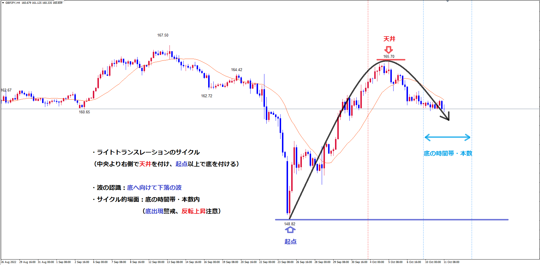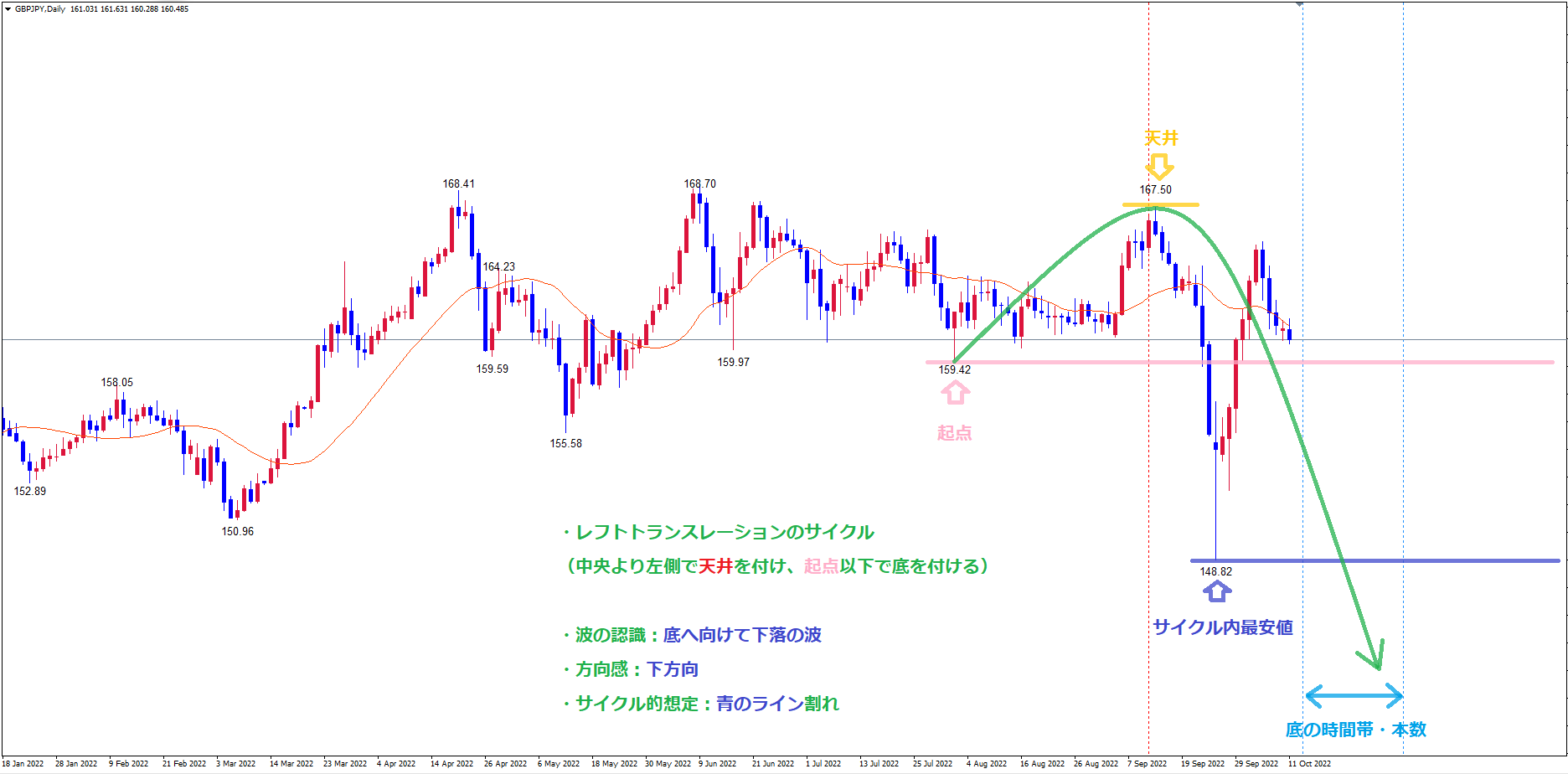 このサイクルは既に起点の桃のラインを割れているのでレフトトランスレーションのサイクルという事が確定していて、