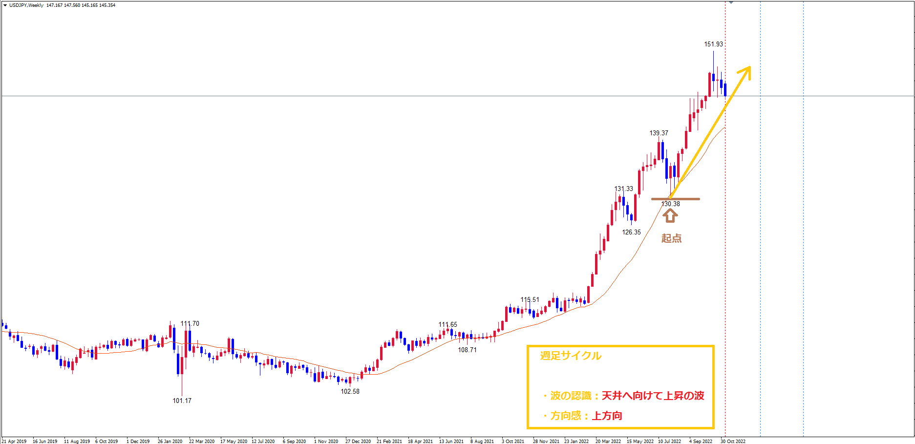 まず初めに週足のサイクル的状況を確認していきましょう。