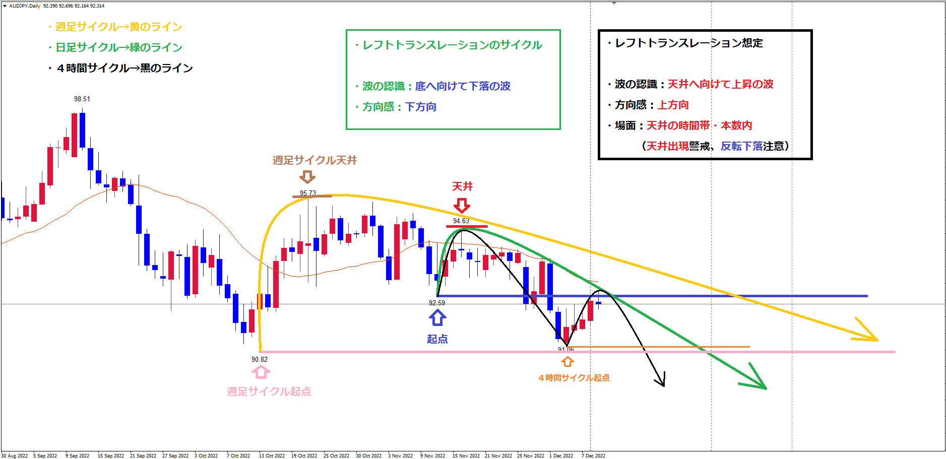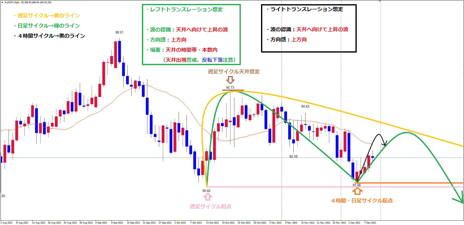 日足サイクルはオレンジのラインからスタートしていてもレフトトランスレーションの可能性が高く、
