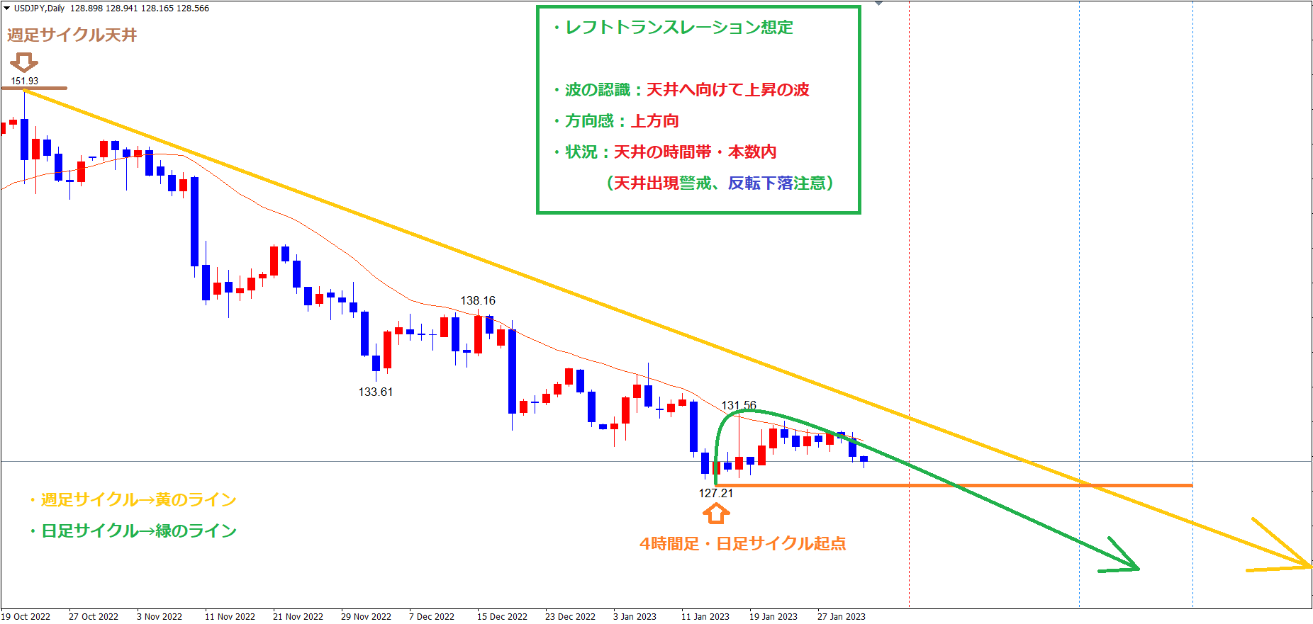 日足サイクルもレフトトランスレーションが確定するので頭には入れておいてください。
