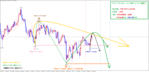 ライトトランスレーションの可能性が高く、オレンジのライン以上で底を付ける可能性が高くなっている状況なので、