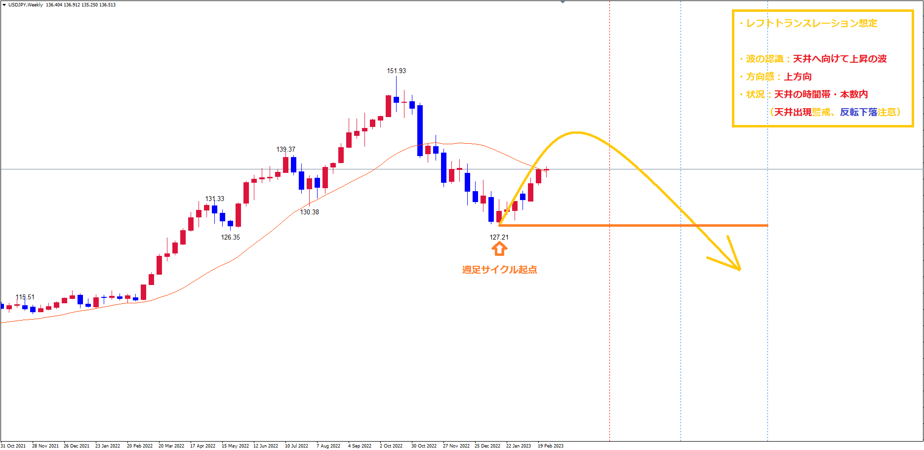 今回の週足サイクルもレフトトランスレーションを想定しています。