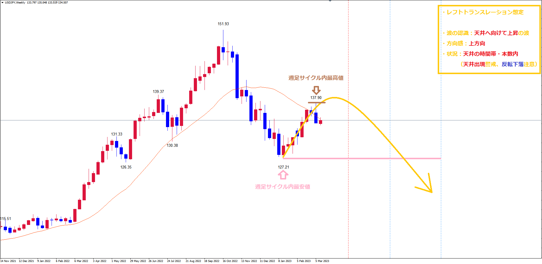 今回の週足サイクルもレフトトランスレーションを想定しています。