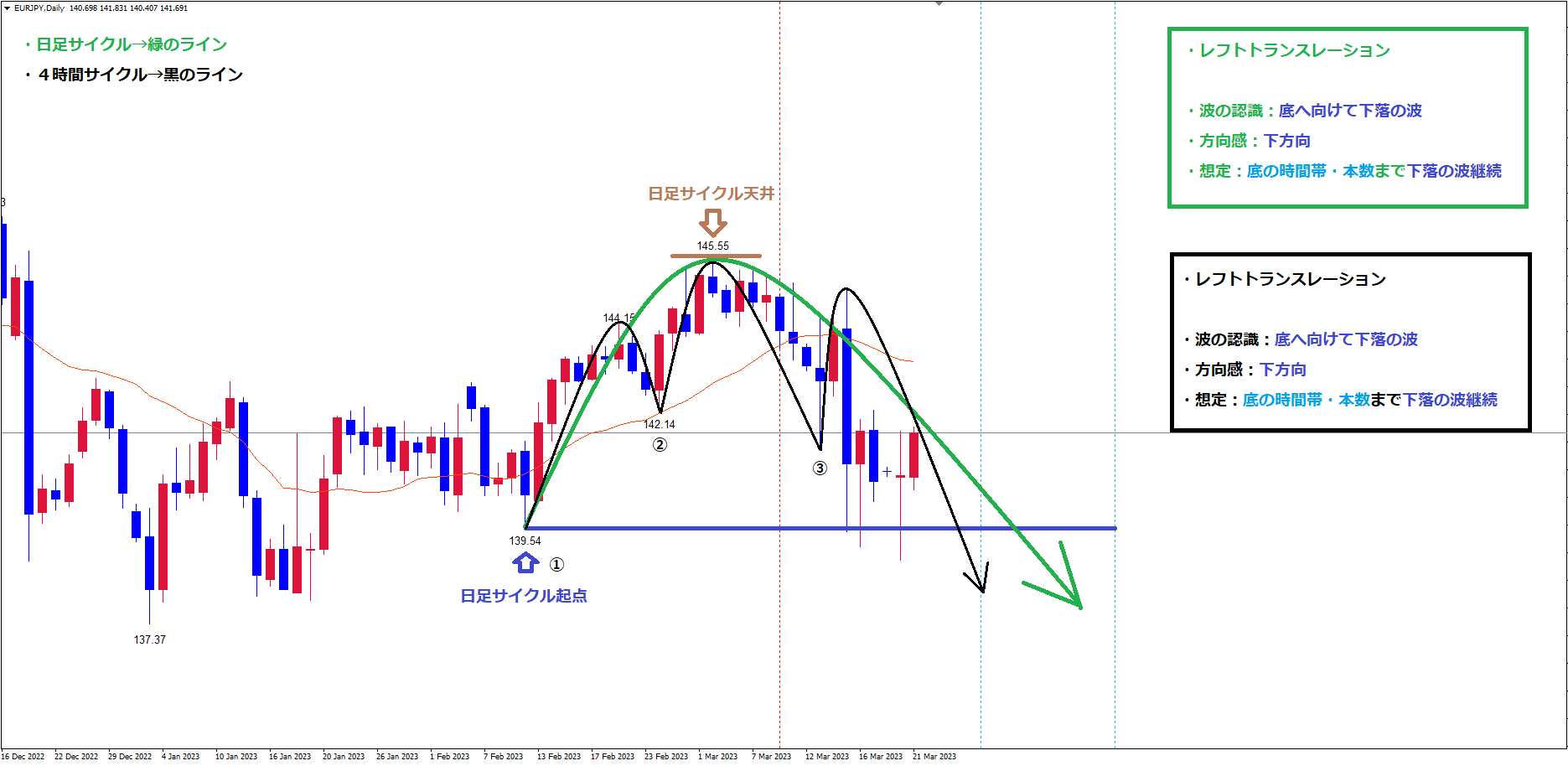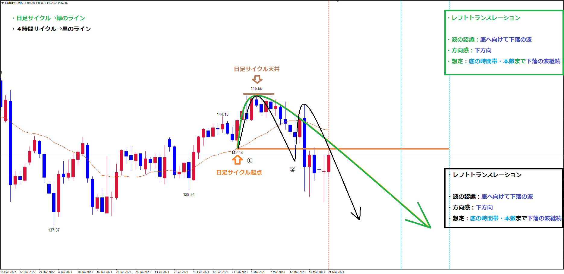 このサイクルで見ても、既に起点割れを起こしている事で、レフトトランスレーションのサイクルという事が確定して、