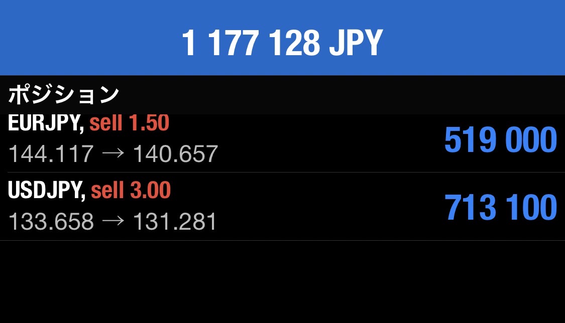上記の傾向から、まだ4時間サイクル①つ分の下落余地がありますが、