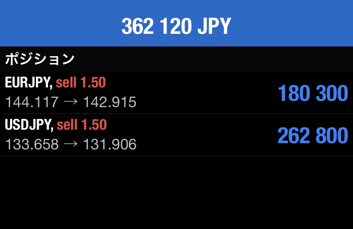 上記の傾向から、まだ4時間サイクル①~②つ分の下落余地があるイメージです。
