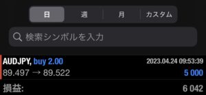 豪ドル円の4時間サイクルは起点と見ている安値以下まで下落したので、予定通りに建値で撤退しておきました。