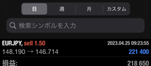 この展開を見越して、ユーロ円はリスクリード1:2以上の所で一部利益を確保しておいたので、結果少し勝ち逃げとなったので良しとしておきます😊