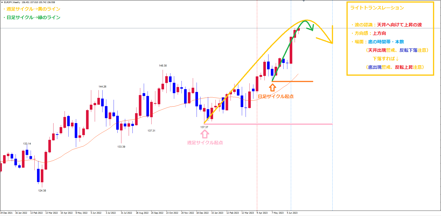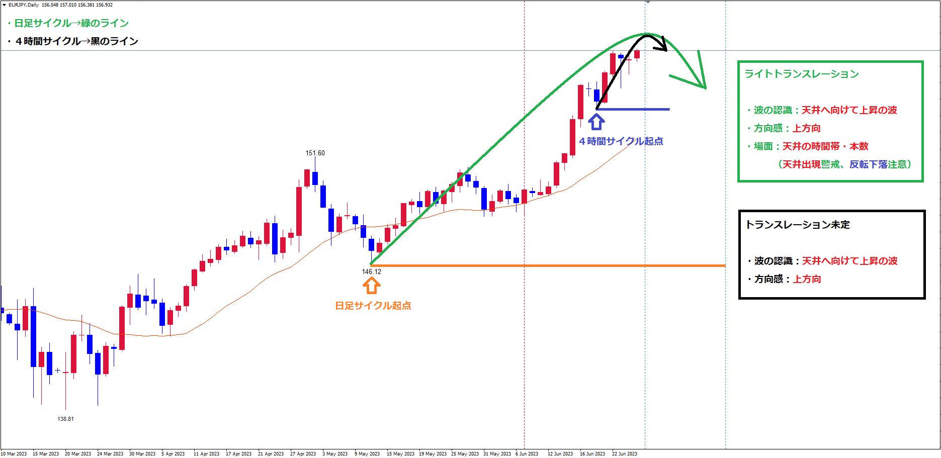 このサイクルは中央より右側で最高値を付けている事で、ライトトランスレーションのサイクルを想定しています。