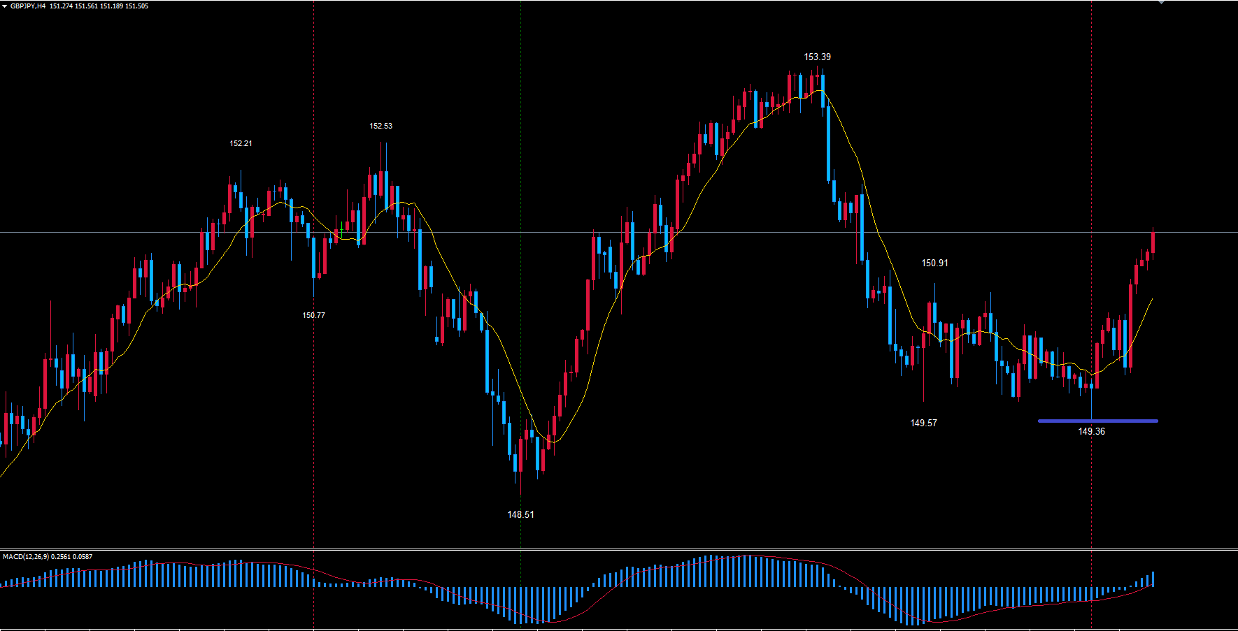 ポンド円4時間サイクルは前回150.91を越えた事で149.36で反転と見ていきます。