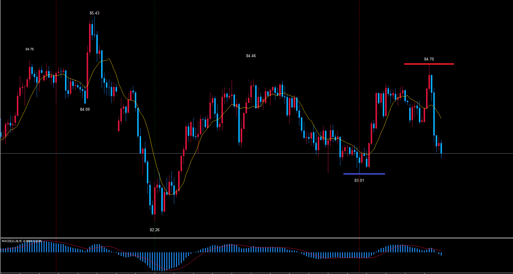 行ってこいで帰ってきたのでタイミングを逃したので84.70を意識して戻せばショートのつもりで様子見していきます。