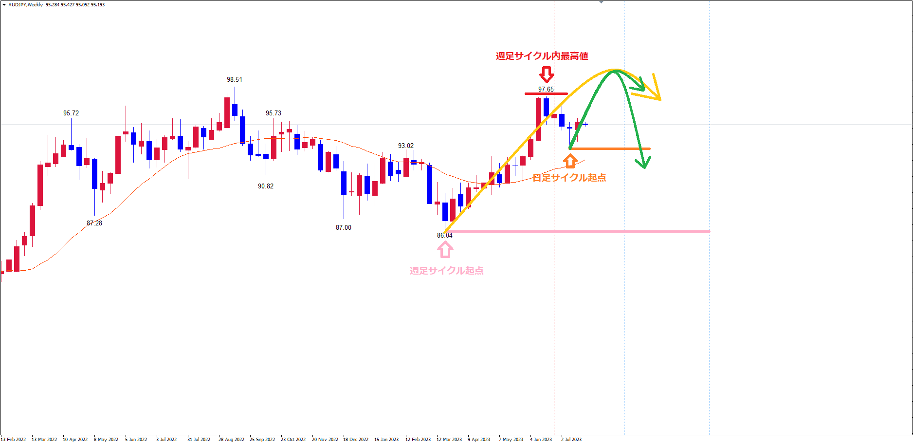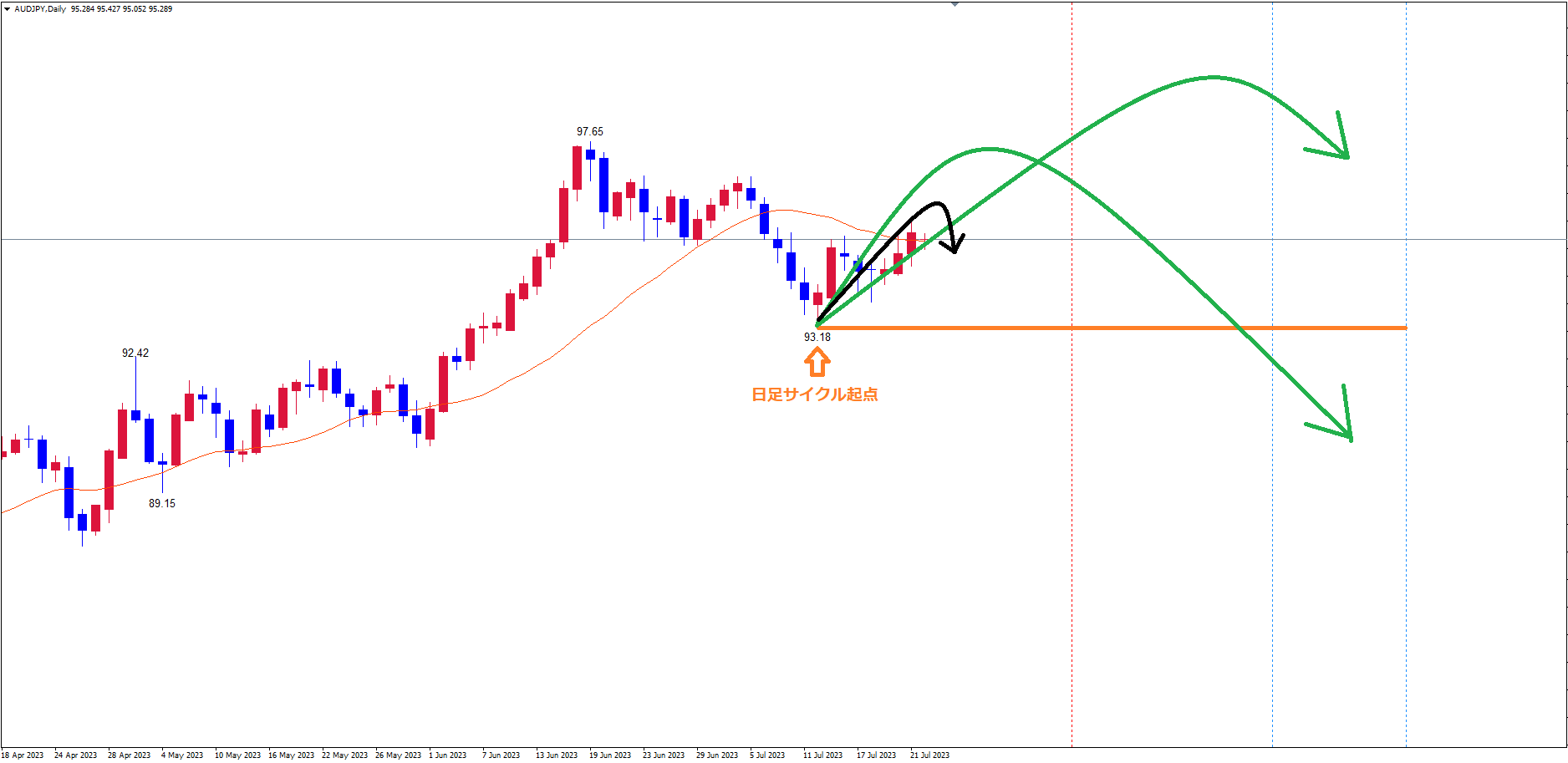 今回は豪ドル円の日足・週足のサイクル的認識とパターン&イメージがどうなるかについて解説していきます。