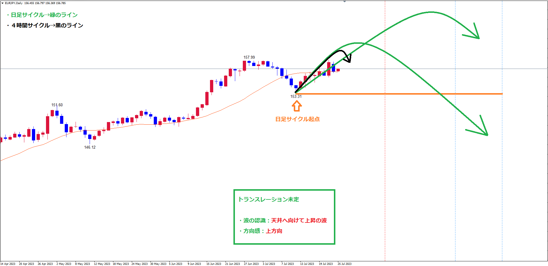 ・次回の4時間サイクル → レフトトランスレーション = 日足サイクル → レフトトランスレーション
